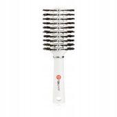 Szczotka została wykonana z włosia dzika oraz włosia syntetycznego, co gwarantuje trwałość oraz efektywność działania. Jej konstrukcja sprzyja zdrowemu pielęgnowaniu włosów, eliminując ryzyko elektryzowania się pasm.