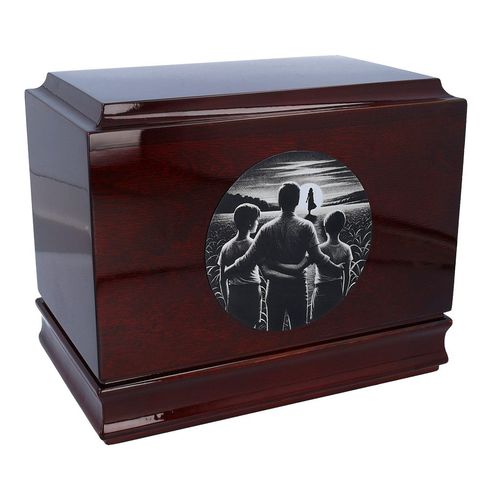 Wykonana z litego drewna mahoniowego urna łączy w sobie trwałość i ponadczasowe piękno. Bogate, głębokie odcienie mahoniu zapewniają dostojny i elegancki wygląd, a fachowe rzemiosło zapewnia trwałą pamiątkę. Misterny grawerunek dodaje artystycznego akcentu, który honoruje pamięć matki w znaczący sposób.