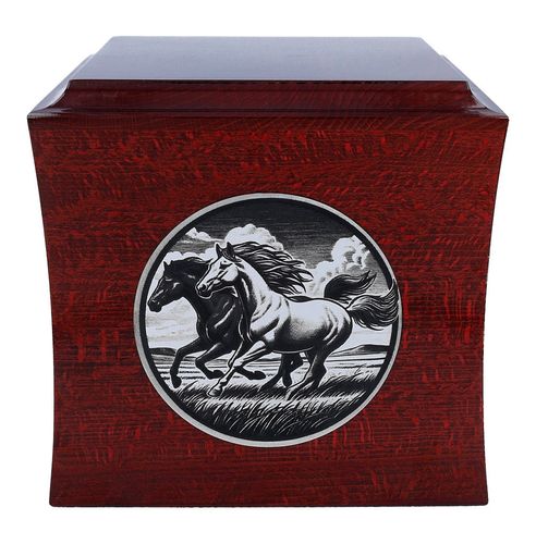 Uczczenie pamięci ukochanej osoby z pasją do koni wymaga szczególnego rodzaju hołdu. Nasza urna z końmi to pięknie wykonana drewniana skrzynka w kolorze mahoniu, zaprojektowana tak, aby służyć jako godny i znaczący pomnik.
