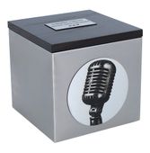 Urna kremacyjna z mikrofonem to niezwykła propozycja dla osób, które kochały muzykę, śpiew lub scenę. Wykonana ze stali nierdzewnej oraz drewna, prezentuje elegancką i nowoczesną formę. Front urny ozdobiony jest grafiką przedstawiającą klasyczny mikrofon, symbolicznie oddając hołd artystom, wokalistom i miłośnikom dźwięku.