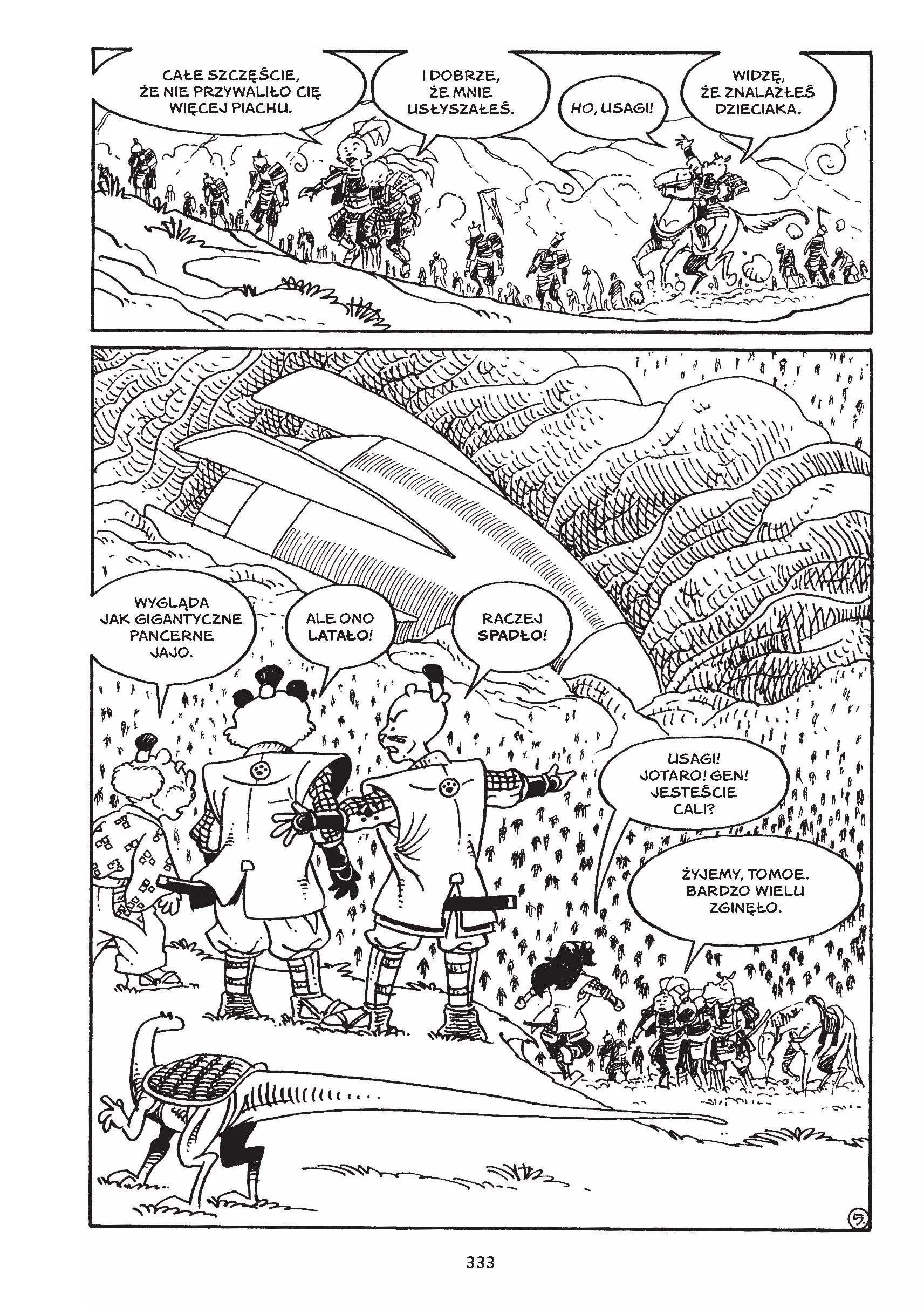 Nowe wydanie popularnej serii „Usagi Yojimbo”. Księga zatytułowana „Legendy” zbiera historie wydane w tomach „Usagi w kosmosie”, „Senso” oraz „Yokai”. Przygody Usagiego w przyszłości! Czy kodeks samuraja przyda się roninowi w zmaganiach z nowoczesną technologią? Istoty zamieszkujące ten świat są podzielone na wojujące ze sobą klany, Usagi jest wiernym sługą jednego z nich i musi się zmierzyć z agresywnymi maszynami, a także zapobiec kradzieży danych umożliwiających odnalezienie klanowego skarbu. Podczas jednej z bitew przeciwko panu Hikijiemu o ziemię uderza metalowa rakieta. W jej wnętrzu kryją się nowi, niespodziewani wrogowie. Usagi i jego bliscy będą musieli zebrać całą swoją odwagę, a także wykazać się hartem ducha i pomysłowością, by stawić czoła przerażającym machinom wojennym i powstrzymać inwazję przybyszów z kosmosu. Usagi będzie również musiał zmierzyć się demonami i duchami z japońskiego folkloru, po tym jak zdesperowana kobieta poprosi go, by pomógł jej odnaleźć uprowadzoną córkę. Podczas poszukiwań porwanej dziewczynki głęboko w lesie Usagi odkryje, że yokai gromadzą się, by przejąć władzę nad okolicą. Na szczęście do Usagiego dołączy Sasuke. Ale sprawy nie zawsze mają się tak, jak nam się wydaje – zwłaszcza jeśli mamy do czynienia z siłami nadprzyrodzonymi! Seria „Usagi Yojimbo” jest wydawana od ponad trzydziestu lat i tłumaczona na kilkadziesiąt języków. Autorem scenariusza i rysunków jest Stan Sakai, a nowe wydanie zostało wzbogacone o kolorową galerię okładek.