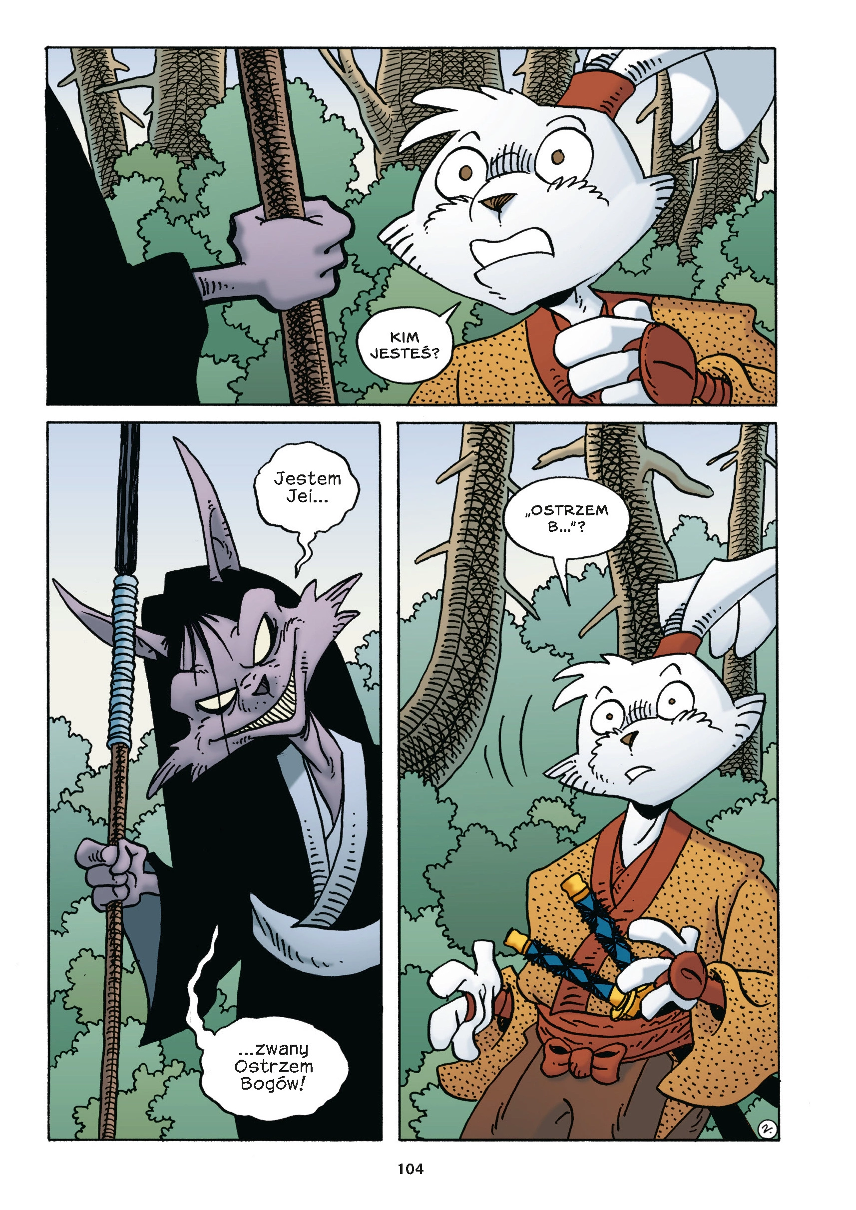Kolejny album opowiadający o przygodach królika ronina Usagiego – w kolorze! Tym razem Usagi wędruje po Japonii w towarzystwie swojego kuzyna Yukichiego. Na tom składają się dwie historie. W Okupie! Usagi i Yukichi spotykają Kitsune, uliczną artystkę i złodziejkę, która ukradła lokalnemu panu listę przekupionych urzędników. Gdy ten w akcie odwetu porywa podopieczną złodziejki, Usagi i Yukichi postanawiają pomóc ją uwolnić. Później, w Rozdrożach, Usagi i Yukichi napotykają pielgrzymów, których napadła banda bezwzględnych roninów. Usagi postanawia ich ścigać, ryzykując powrót w okolice, w których zagrażają mu liczne niebezpieczeństwa, od których niedawno uciekł. Seria „Usagi Yojimbo” jest tworzona od 1984 roku przez supergwiazdę komiksu amerykańskiego, scenarzystę i rysownika Stana Sakaiego. Na jej podstawie powstał serial animowany, który jest emitowany na platformie Netflix.
