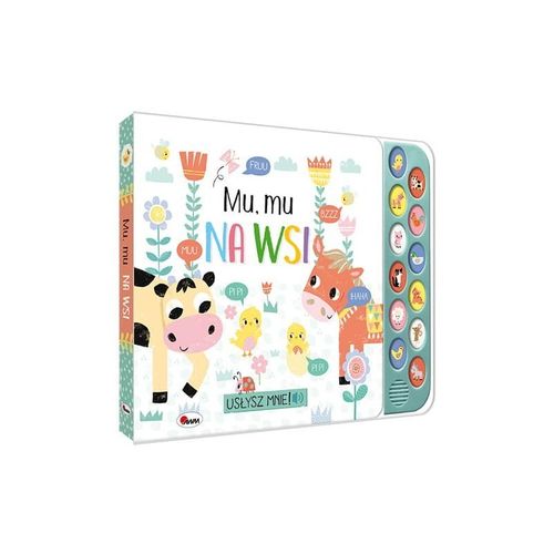 Książka zabiera małych czytelników NA WIEŚ. Dzieci znajdą w niej krótkie teksty. Wyróżnikiem publikacji jest aż 12 różnorodnych DŹWIĘKÓW. Dzięki niej maluch dowie się, jakie dźwięki wydają krowa, kurczątko czy pies.
