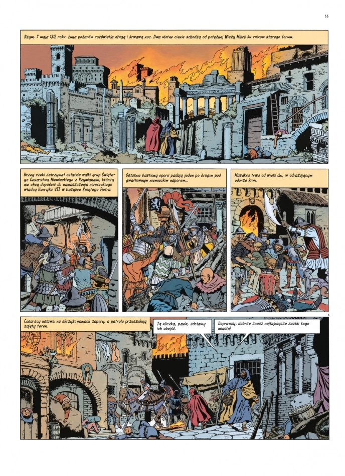 Gilles Chaillet (1946–2011) francuski rysownik i scenarzysta zainspirowany historią i Italią stworzył postać sieneńczyka Vasco, przeżywającego przygody w połowie XIV stulecia. Był to okres kiedy rycerstwo wydawało swe ostatnie tchnienie, ale epoka renesansu jeszcze nie nadeszła. Rzeczywistymi panami średniowiecznej Europy byli mecenasi, kupcy i bankierzy jak Tolomeo Tolomei. Czując zmieniający się powiew wiatru historii angażuje swojego bratanka Vasco w intrygi polityczne i finansowe. Prawdziwe wydarzenia mieszają się z fikcją i przygodą. Vasco doskonale czuje się na dworach Italii, Francji czy Ardenów, gdzie trafił na miejscową legendę i leśnego potwora. Następnie kolejny raz angażuje się po stronie trybuna Coli di Rienzo. Triumfalne przybycie do Wiecznego Miasta szybko przeradza się w walkę o władzę usianą manipulacjami i zmowami możnych. Słynny holenderski kulturoznawca Johan Huizinga w książce Jesień średniowiecza opisał XIV i XV stulecie "nie tyle jako zapowiedź nadchodzącego renesansu, ale jako schyłek średniowiecza, jako wiek, w którym średniowieczne myślenie osiąga końcowe stadium swego żywota, na kształt drzewa o przejrzałych owocach, nie w pełni rozwijających się i rozwiniętych". Gilles Chaillet doskonale przedstawia ówczesną kulturę i sposób bycia, ukazuje obyczaje, stosunek do sztuki, religii oraz umysłowość człowieka tamtych czasów. Dzięki ogromnej wiedzy odtwarza w rysunkach charakterystyczne elementy epoki. Niniejsza edycja zawiera trzy oryginalne albumy (Bestia, Rienzo, Cienie przeszłości) oraz dodatki przybliżające kulisy pracy nad komiksem.
