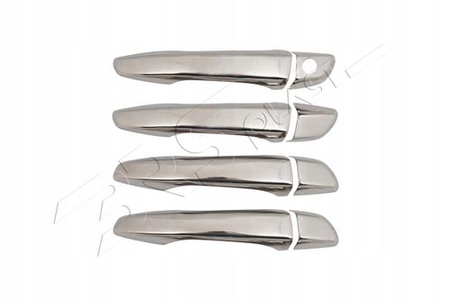 Zestaw 4 sztuk nakładek na klamki wykonanych z najwyższej jakości stali nierdzewnej z wykończeniem chromowanym — idealne, by odświeżyć wygląd drzwi i nadać im elegancki, nowoczesny charakter.