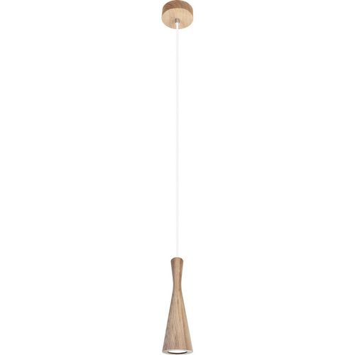 Lampa VEGAS to lampa wisząca wykonana z naturalnego drzewa dębowego z przewodem w oplocie koloru białego. Wyposażona w jednopunktowy strumień światła z gniazdem na żarówkę typu GU10.