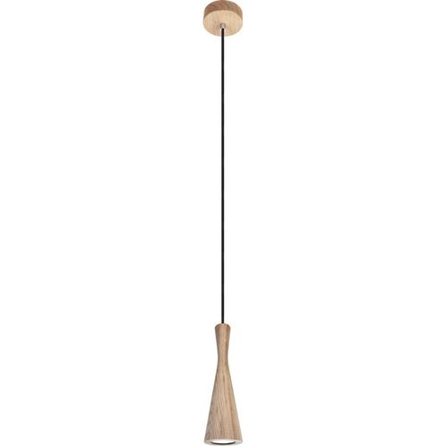 Lampa VEGAS to lampa wisząca wykonana z naturalnego drzewa dębowego z przewodem w oplocie koloru czarnego. Wyposażona w jednopunktowy strumień światła z gniazdem na żarówkę typu GU10.