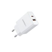 Ładowarka sieciowa Veger z dwoma portami: USB-C i USB-A. Wpiera standardy szybkiego ładowania.