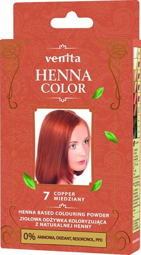 Ziołowa odżywka koloryzująca Henna Color to roślinny preparat do farbowania włosów, wykonany ze sproszkowanych liści naturalnej henny. Zawiera aktywne, naturalne składniki, dzięki którym nie tylko farbuje, ale również głęboko odżywia i pielęgnuje włosy, poprawiając ich kondycję po każdym zastosowaniu. Trwałość koloru 8-10 myć.
