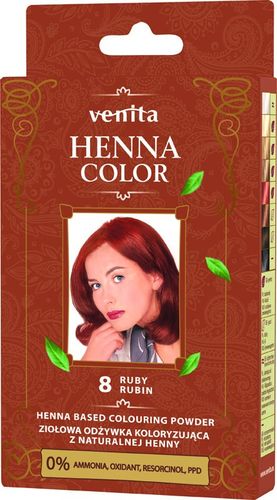 Ziołowa odżywka koloryzująca Henna Color to roślinny preparat do farbowania włosów, wykonany ze sproszkowanych liści naturalnej henny. Zawiera aktywne, naturalne składniki, dzięki którym nie tylko farbuje, ale również głęboko odżywia i pielęgnuje włosy, poprawiając ich kondycję po każdym zastosowaniu. Trwałość koloru 8-10 myć.