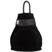 Elegancki trójkątny skórzany plecak damski znanej i cenionej na rynku europejskim marki VERA PELLE ITALY w kolorze CZARNYM. Uszyty został z najwyższej jakości i przyjemnej w dotyku włoskiej skóry naturalnej zamszowej. Plecak posiada srebrne okucia oraz zapinany jest z przodu na obrotowy bigiel. Jednokomorowy środek zapinany jest na suwak i wykończony podszewką. W środku dodatkowo znajduje się praktyczna kieszonka zamykana na suwak oraz dwie otwarte kieszonki na telefon i dokumenty. Plecak posiada z tyłu dwie szelki do wygodnego noszenia go na plecach. Szelki są dodatkowo regulowane, dzięki czemu idealnie dopasujesz go do własnych preferencji. Plecak posiada dodatkowo na górze wygodny uchwyt do noszenia go również w ręku. Dodatkowo z tyłu znajduje się dodatkowa pionowa kieszeń zamykana na suwak. Plecak jest bardzo elegancki, wygodny i jednocześnie praktyczny. Będzie świetnym dodatkiem do codziennych i podróżnych stylizacji.