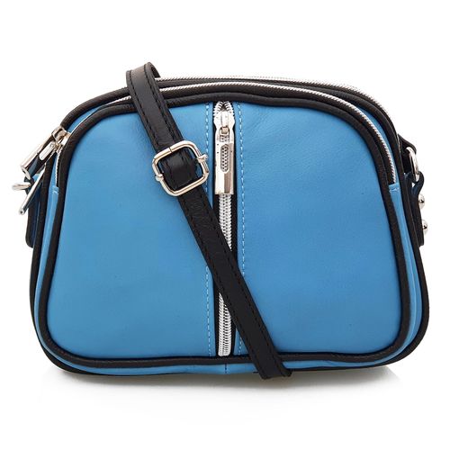 Włoska skórzana torebka, listonoszka damska znanej marki VERA PELLE ITALY w kolorze NIEBIESKIM. Wykonana została z mięciutkiej w dotyku i pachnącej, najwyższej jakości skóry naturalnej. Wykonanie torebki jest bardzo staranne z dbałością o wszystkie szczegóły a szwy proste i precyzyjne. Torebka mimo swoich rozmiarów jest bardzo praktyczna i pojemna. Posiada aż trzy niezależne, zamykane na suwak komory a środek wykończony jest solidną podszewką. Z przodu znajdziesz dodatkową funkcjonalną kieszonkę zamykaną na suwak. Torebka posiada długi i regulowany pasek o długości 130 cm, dzięki czemu bez trudu dopasujesz ją do swojego wzrostu i preferencji. Dzięki klasycznemu wyglądowi będzie pasowała do niemal każdej codziennej jak i wizytowej stylizacji. Sprawdzi się również jako wyszukany prezent dla najbliższej Ci osoby.
