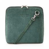 Wytrzymała i solidna torebka listonoszka marki VERA PELLE ITALY w kolorze CIEMNEJ BUTELKOWEJ ZIELENI. Wykonana została bardzo starannie z dbałością o najmniejsze szczegóły z najwyższej jakości skóry naturalnej zamszowej. Szwy są proste i staranne. Posiada długi pasek o długości 130 cm, dzięki czemu możesz torebkę wygodnie nosić na ramieniu. Będzie pasowała do niemal każdej stylizacji. Jak na swój wymiar jest pojemna, dzięki czemu bez trudu zmieścisz telefon komórkowy i inne drobiazgi potrzebne na co dzień. W środku jest wykończona podszewką i posiada przez środek przegrodę zamykaną na suwak. Pozwoli to bez trudu oddzielić np. telefon od kluczy.