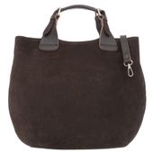 Duża torebka damska typu shopper znanej i cenionej na rynku europejskim marki VERA PELLE ITALY w kolorze CIEMNEGO CZEKOLADOWEGO BRĄZU. Wykonana została bardzo starannie z najwyższej jakości i przyjemnej w dotyku sztywnej zamszowej skóry naturalnej. Torebka posiada srebrne okucia oraz regulowane rączki do wygodnego noszenia jej w ręku. Dodatkowo torebka posiada w zestawie odpinany pasek do noszenia na ramieniu. Torebka posiada jednokomorowy środek oraz odpinaną, wyjmowaną i zamykaną na suwak kosmetyczkę. Kosmetyczka ta posiada dodatkowo praktyczną otwartą kieszonkę na dokumenty lub telefon. Torebka ta będzie świetnym dodatkiem do codziennych i wyjściowych stylizacji.