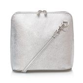 Wytrzymała i solidna torebka listonoszka marki VERA PELLE ITALY w kolorze SREBRNYM BŁYSZCZĄCYM. Wykonana została bardzo starannie z dbałością o najmniejsze szczegóły z najwyższej jakości skóry naturalnej. Szwy są proste i staranne. Posiada długi pasek o długości 130 cm, dzięki czemu możesz torebkę wygodnie nosić na ramieniu. Będzie pasowała do niemal każdej stylizacji. Jak na swój wymiar jest pojemna, dzięki czemu bez trudu zmieścisz telefon komórkowy i inne drobiazgi potrzebne na co dzień. W środku jest wykończona podszewką i posiada przez środek przegrodę zamykaną na suwak. Pozwoli to bez trudu oddzielić np. telefon od kluczy.