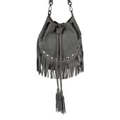 Torebka zamszowa listonoszka z ćwiekami, w stylu boho, znanej i cenionej marki VERA PELLE ITALY w kolorze CIEMNOSZARYM.