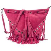 Torebka zamszowa listonoszka z ćwiekami, w stylu boho, znanej i cenionej marki VERA PELLE ITALY w kolorze FUKSJI.