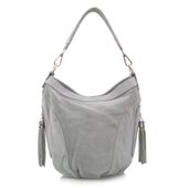 Włoski skórzany worek marki VERA PELLE ITALY w kolorze JASNOSZARYM. Torebka wyprodukowana została we Włoszech z najwyższej jakości, pięknie pachnącej i miłej w dotyku skóry naturalnej zamszowej z dbałością o najmniejsze szczegóły. Zamykana jest na praktyczny suwak a w środku wykończona solidną podszewką. Posiada dwie oddzielne komory przedzielone przegrodą zamykaną na suwak, dodatkową kieszonkę na suwak na bocznej ściance oraz niedużą kieszonkę na telefon komórkowy lub portfel. Z tyłu torebki znajduje się dodatkowa duża kieszeń na suwak. Po bokach posiada ozdobne frędzelki, które służą do otwierania funkcjonalnych kieszonek bocznych. Dzięki takiej ilości kieszonek torebka jest bardzo pojemna i praktyczna. Można ją wygodnie nosić w ręku lub na ramieniu, dzięki dołączonemu dodatkowemu długiemu paskowi. Główna rączka torebki jest również odpinana.