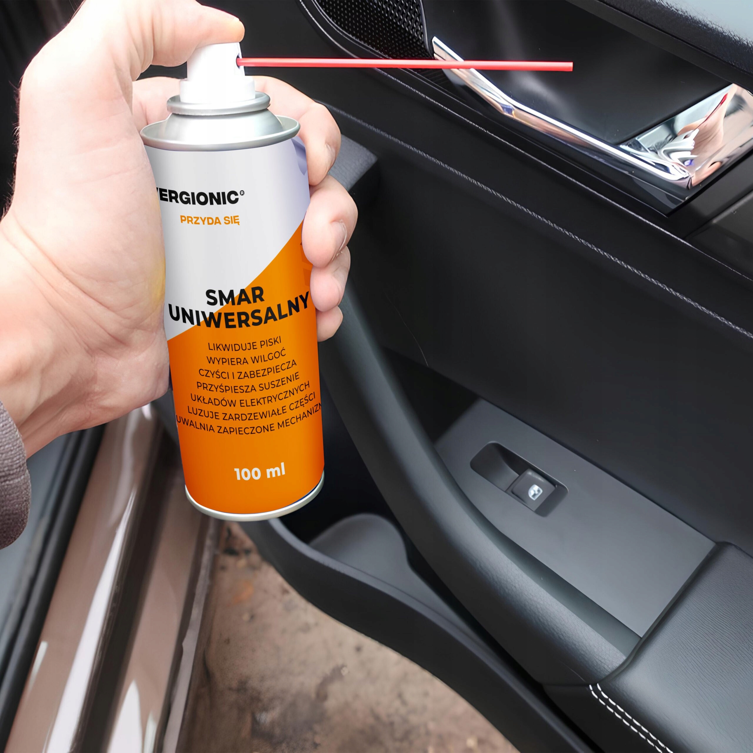 Dodatkowo, smar jest łatwy w użyciu. Wystarczy spryskać go na oczyszczoną powierzchnię. Można również użyć go do smarowania trudno dostępnych miejsc dzięki precyzyjnej rurce załączonej do smaru.