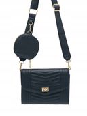 Zgrabna, a zarazem praktyczna torebka nie obciąży stylizacji. Jednokomorowy model pomieści wszystkie najpotrzebniejsze drobiazgi, które chcesz mieć zawsze przy sobie. W środku znajdują się dwie kieszonki (każda na dwie karty). Komora przedzielona jest kieszonką zamykaną na zamek. Dodatkowo do torebki dołączony jest mały, zapinany na zamek portfelik na drobne przedmioty, który można odpinać. Tył torebki jest gładki. Torebka jest usztywniana, nie zmienia więc swego kształtu pod wpływem zawartości. Torebce charakteru i niepowtarzalności dodają przeszycia.