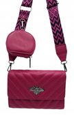 Zgrabna, a zarazem praktyczna torebka nie obciąży stylizacji. Dwukomorowy model pomieści wszystkie najpotrzebniejsze drobiazgi, które chcesz mieć zawsze przy sobie. W środku obydwu komór znajdują się kieszonki na dwie karty. Torebkę dzieli kieszonka zamykana na zamek. Dodatkowo do torebki dołączony jest mały, zapinany na zamek portfelik na drobne przedmioty, który można odpinać. Torebka jest usztywniana, nie zmienia więc swego kształtu pod wpływem zawartości. Niepowtarzalności dodają torebce przeszycia oraz pszczoła na zapięciu.