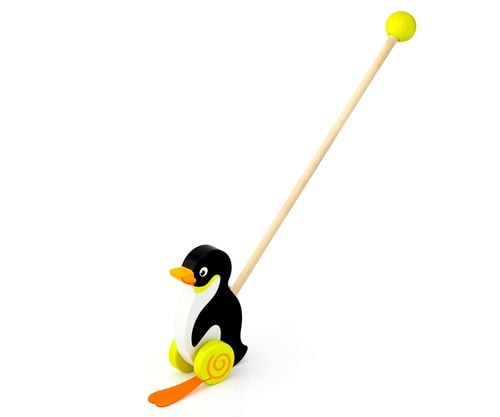 Uroczy pingwinek, który towarzyszy maluchowi podczas "spacerów", klapie zabawnie swoimi gumowymi łapkami, co dodatkowo motywuje do kolejnych wypraw. Drewniane kółeczka z antypoślizgowymi łapkami imituje spacerujące zwierzątko, co zapewnia dzieciom wiele radości. Dla rodziców ważne jest również, że zabawka jest bezpieczna - wykonana z drewna bukowego i pomalowana nietoksycznymi farbami, które spełniają normy bezpieczeństwa EN71 i ASTM.