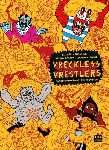 Przed Państwem profesjonalna, Międzywymiarowa Liga Wrestlingu, w której brak zasad jest jedyną regułą! Udział w niej biorą m.in. wojownicza i zarośnięta Barbarica, chuligan z Gdyni, karateka Spike Lee czy krwiożerczy Krymski Krab. A to przecież nie wszyscy zawodnicy! Komiks jest, z grubsza, pozbawiony dialogów – Vrestlerzy walczą, nie gadają! Vreckless Vrestlers to hołd złożony popkulturze lat 80. i 90. – „wolnej amerykance”, kreskówkom, grom video, zabawkom i tym historyjkom obrazkowym, które nigdy nie zostaną ponownie wydane. Wymyślając Międzywymiarową Ligę Wrestlingu, Łukasz Kowalczuk stworzył sobie bardzo wygodną i pojemną arenę do zabawy z komiksem, gatunkami i popkulturą. „Vreckless Vrestlers” pełen jest nawiązań do jego największych zajawek (He-Man, WWF, WCW, Wojownicze Żółwie Ninja), fantastycznie zaprojektowanych komiksowych stron i totalnie soczystej nawalanki. Miniony rok spędziłem na nerwowym oczekiwaniu na kolejne części „Vreckless Vrestlers”. Płakałem i darłem włosy z brody, kiedy mój faworyt niemal na samym początku odpadł z turnieju. To były emocje porównywalne tylko z oglądaniem walk typu „barbed wire iron cage”! Jednak, i to jest w przypadku „Vreckless Vrestlers” najistotniejsze, ten komiks (warsztatowo rzecz ujmując) to po prostu kwintesencja obrazkowej narracji (na ringu). – Michał „Śledziu” Śledziński Prawdziwie międzynarodowy komiks. Kowalczuk udowadnia, że potrafi doskonale prowadzić czytelnika przez opowieść, a walki konstruuje tak, że mimo mnóstwa krwi i gore przypominają one balet. Bardzo polecam! – Richard Bruton, Forbidden Planet Blog To nie jest komiks dla wszystkich, ale jest dla mnie! To świetnie skonstruowana, zrobiona z sercem i artystyczną inwencją czysta komiksowa radość. – Daniel Elkin, „Comics Bulletin” Nie doceniłem Kowalczuka albo zwyczajnie się myliłem. Bądź też jestem po prostu fanem spoconych facetów ocierających się o siebie intensywnie i bałem się do tego przyznać nawet przed samym sobą. – Szymon Holcman, „Biceps”