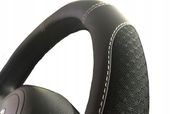 Ten wysokiej jakości pokrowiec na kierownicę wykonany jest z wytrzymałej ekoskóry połączonej z materiałem antypoślizgowym. Zapewnia to doskonałą przyczepność i zapobiega ślizganiu się dłoni podczas jazdy, zwiększając bezpieczeństwo i wygodę prowadzenia pojazdu.