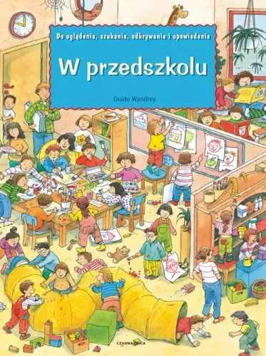 W przeszkolu" to duża książka obrazkowa specjalnie do oglądania, do szukania, do odkrywania i opowiadania. Witamy w przedszkolu Dmuchawiec! Co możemy razem robić? Możemy razem malować, czytać, jeść smakołyki na śniadanie, a na placyku zabaw świetnie się bawić. Na każdej stronie książki znajdziecie Mię, Emmę, Selinę, Łukasza i Juliana. Bardzo się przyjaźnią. Miejcie oczy szeroko otwarte!
