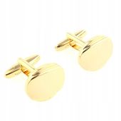 Te spinki do mankietów o klasycznym, uniwersalnym designie wyróżniają się precyzyjnym polerowaniem i solidną konstrukcją, która podkreśla dbałość o detale. Wykonane z utwardzonego stopu cynku i miedzi, z trwałą warstwą galwaniczną w kolorze złotym, zapewniają niezawodne wykończenie, idealne do codziennego lub okazjonalnego noszenia.