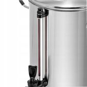 Ten warnik do wody o pojemności 20 l, wykonany z wysokopolerowanej stali nierdzewnej, wyróżnia się solidną konstrukcją i precyzyjnym wykonaniem. Zakryta grzałka zapewnia równomierne nagrzewanie wody do 17,5 l pojemności użytkowej, co pozwala na szybkie i niezawodne przygotowanie gorących napojów w warunkach domowych lub biurowych.