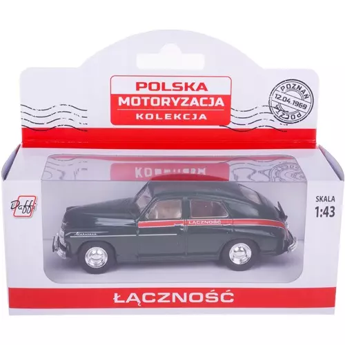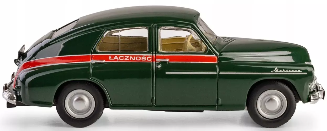 Pierwsza Warszawa M-20 zmontowana z części sprowadzonych z ZSRR zjechała z taśmy montażowej 6 listopada 1951 roku o godzinie 14:00. Początkowe plany zakładały produkcję na poziomie 25 000 sztuk rocznie, do końca roku 1951 powstało jednak jedynie 75 egzemplarzy. W początkowym okresie produkcji samochód montowany był z części radzieckich, dopiero 19 września 1953 roku zmontowano silnik M-20 w całości z części polskich. W 1954 roku rozpoczęto również eksport. Początkowo samochód trafiał do Chin, Rumunii, Albanii oraz Bułgarii. W oparciu o podzespoły dedykowane dla Warszawy skonstruowano także samochody dostawcze: Żuka, Nysę oraz Tarpana. Samochody te były wykorzystywane do dostarczania przesyłek pocztowych. Pojazd wykonany z metalu z elementami plastikowymi, w skali 1:43.