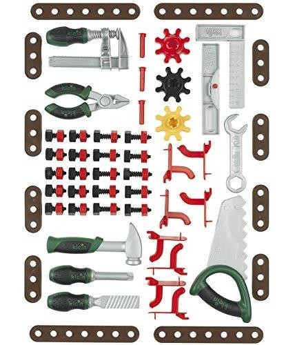 Wspaniały zestaw dla młodego majsterkowicza to zabawkowa kopia prawdziwych narzędzi Bosch stworzona przez firmę THEO KLEIN. Komplet składa się z 75 elementów, takich jak: piła, młotek, zacisk, pilniki, klucze, obcęgi, śruby oraz solidny stojak do powieszenia wszystkiego. Zabawki są wykonane z plastiku najwyższej jakości, który gwarantuje ich wytrzymałość. Zabawa przy użyciu tego sprzętu rozwinie kreatywność dziecka i zapewni rozrywki przez wiele godzin.
