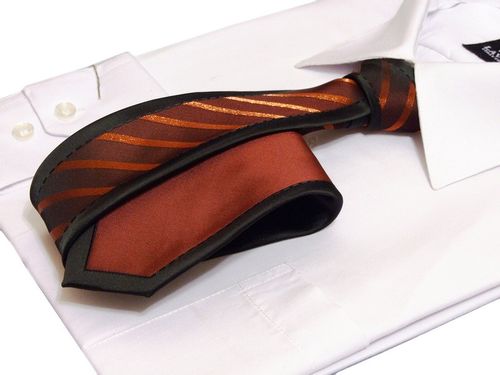 Krawat-śledź marki JASMAN. Kolor czarno-czerwony. Krawat czarno-czerwony, w skośne, nieregularne, błyszczące pasy. Elegancki, modny krawat czarno-czerwony, błyszczący z czarnym bokiem. Krawat-śledź Japan Style.