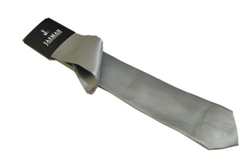 Wąski krawat męski w kolorze popielato-srebrnym w komplecie z poszetką. Krawat jednokolorowy, materiał w drobniutką, tłoczoną kratkę. Poszetka w kolorze krwata. Elegancki zestaw doskonały na prezent.