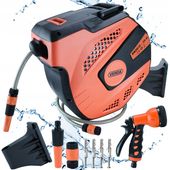 Produkt ten został skonstruowany z naciskiem na prostotę użytkowania. Montaż jest niezwykle prosty - wystarczy przykręcić 4 śruby montażowe do elewacji budynku, założyć wąż i zabezpieczyć uchwytem z zestawu oraz podpiąć wodę za pomocą szybkozłączki. Od tej chwili możesz cieszyć się wygodnym, automatycznym wężem ogrodowym.