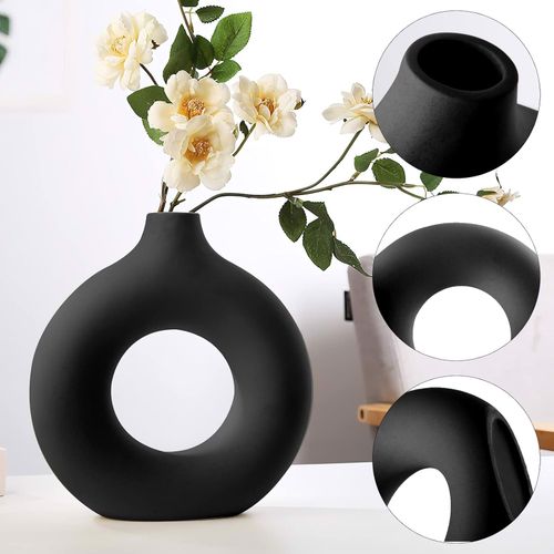 Ceramiczny wazon z oczkiem na kwiaty to elegancka dekoracja do wnętrza.