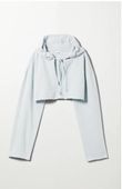 Ultra krótka, oversize'owa bluza z kapturem wykonana z mieszanki bawełny organicznej 80/20 i poliestru z recyklingu. Ma pudełkowy krój, dwuwarstwowy kaptur ze ściągaczem i surowe brzegi.