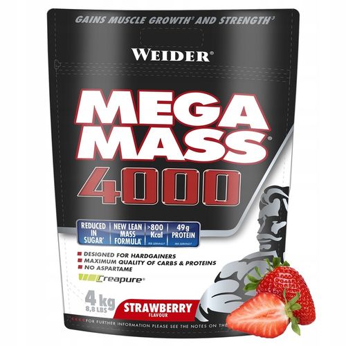 ✅ Nazwa: Weider Mega Mass 4000 4 kg - Strawberry | Mass Gainer