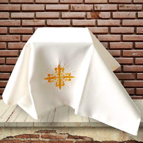 Oferowane przez nas sklep welony wykonane są z bardzo wysokiej jakości tkaniny, przyjemnej w dotyku, która zapewnia dużą estetykę oraz komfort użytkowania. Centralnym elementem zdobienia jest haft złotego krzyża, który wykonany jest z niezwykłą precyzją, krzyż ten nadaje welonom wyjątkowy charakter i podkreśla ich znaczenie religijne. Tkanina ładnie i lekko odbija światło, dzięki czemu nadaje welonowi bardzo piękny i uroczysty wygląd.