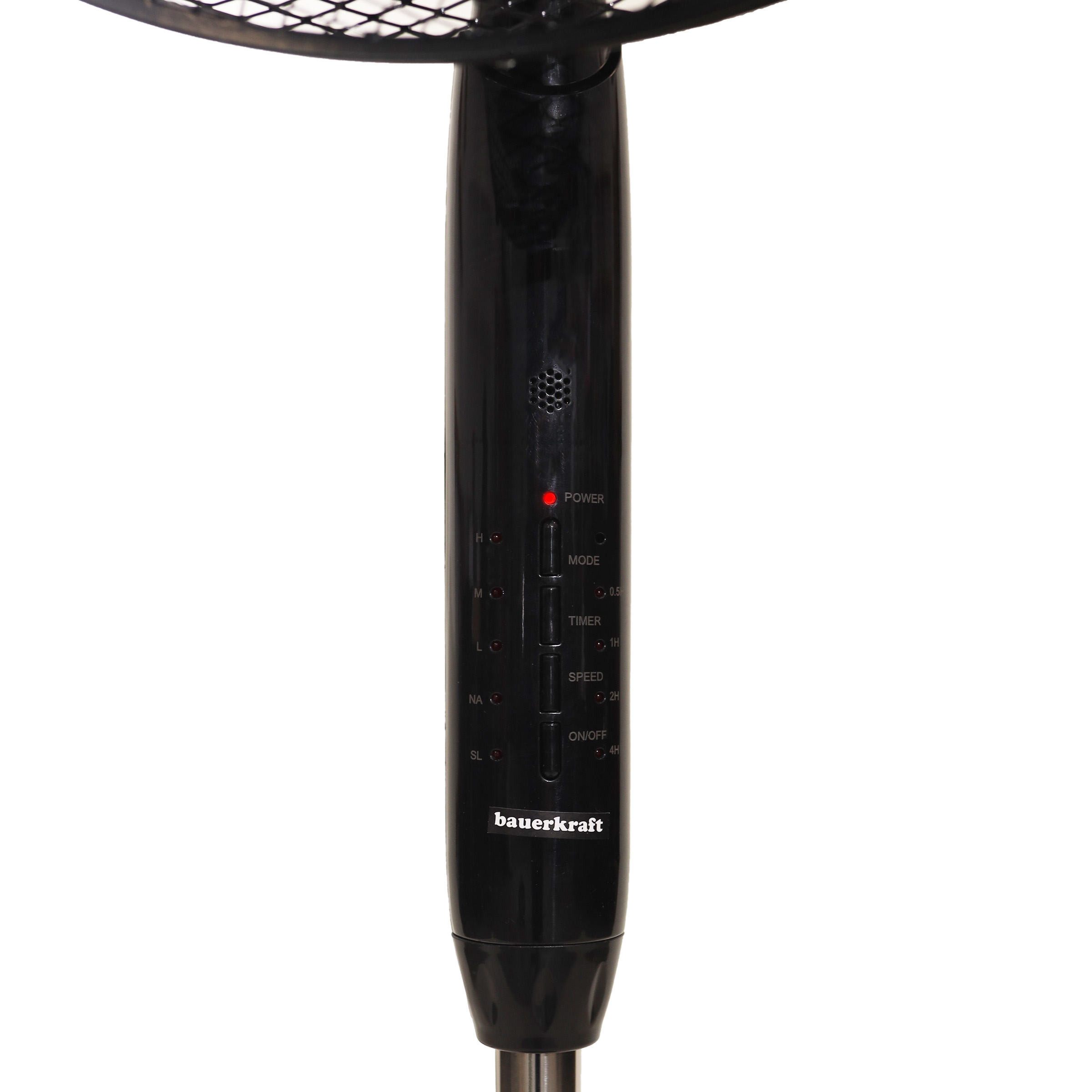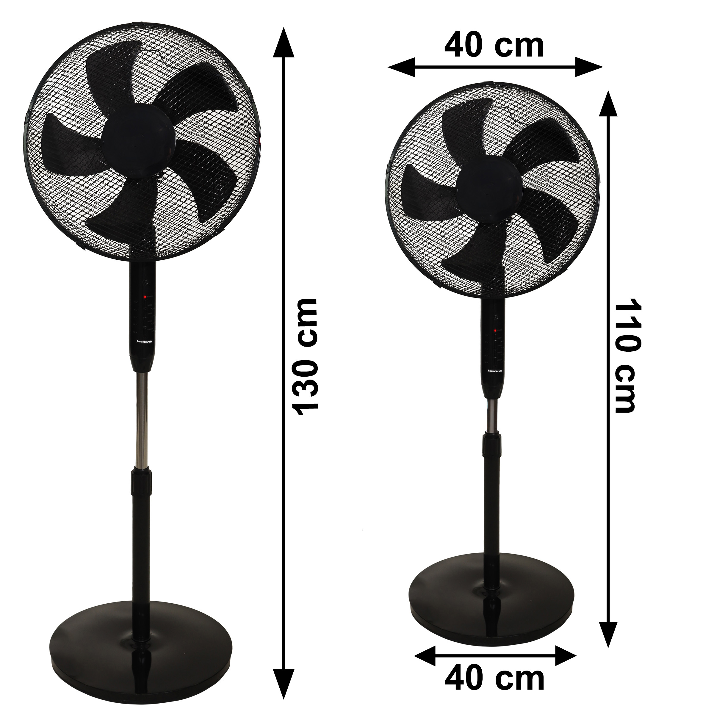 Możliwość regulacji wysokości w zakresie od 110 do 130cm pozwala na indywidualne dopasowanie wentylatora do swoich potrzeb. Dzięki regulacji doskonale sprawdzi się zarówno przy stanowisku pracy, jak również ustawiony obok sofy w salonie. Solidna konstrukcja zapewnia całkowite bezpieczeństwo użytkowania, zwłaszcza jeśli w domu są małe dzieci lub zwierzęta. Podstawa wentylatora dzięki swojej uniwersalnej, okrągłej formie, nie tylko zapewnia niesamowitą stabilność, ale również będzie pasować do każdej stylistyki wnętrza. Wentylator obraca się, co gwarantuje równomierne rozprowadzenie chłodnego powietrza w całym pomieszczeniu. Funkcja oscylacji pozwala na zachowanie prawidłowej cyrkulacji powietrza w wybranym pomieszczeniu oraz równej temperatury. Możliwość swobodnego ustawienia kąta nachylenia głowicy w zakresie kilkunastu stopni pozwala dopasować kierunek nawiewu do własnych preferencji i upodobań.