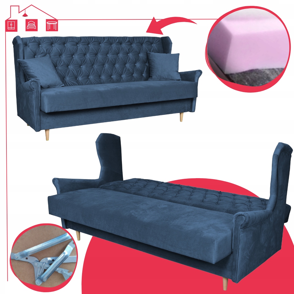 Informacje dodatkowe: funkcja spania, podłokietniki, pojemnik na pościel