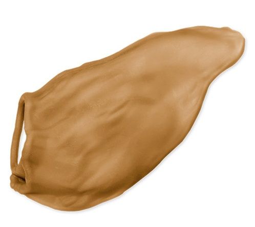 Box WHIMZEES Wege Ucho zawiera 18 szt. gryzaków w kształcie ucha. Jeden gryzak ma ok. 17,5 cm długości i waży ok. 55 g.