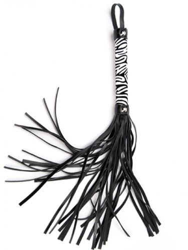 Klasyczny flogger wykonany ze skóry PU, drewna i bezniklowego metalu z twistem w kolorze białej pantery