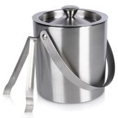 TERMICZNE - Wiaderko termiczne na lód ze szczypcami, uchwytem i pokrywką. Wiaderko pozwoli w atrakcyjny sposób podać lód do napojów. Wiaderko ma wymiary 15 x 16 cm i pojemność 1,7 litra. W zestawie szczypce o długości 14 cm.