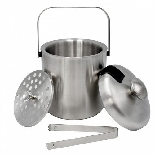 Wiaderko do lodu zostało wykonane z wysokiej jakości stali nierdzewnej. Jest to naczynie z pokrywą i wygodnym, składanym uchwytem. Dzięki podwójnym ściankom posiada właściwości termoizolacyjne aby dłużej przechowywać lód i w dowolnej chwili serwować go do napojów i drinków. W zestawie szczypce chowane w pokrywie. Perforowana wkładka pozwala utrzymać kostki lodu nad warstwą wody, która może zbierać się na dnie.