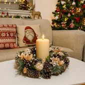 Ten wysokiej jakości wianek świąteczny Altom Design o średnicy 30 cm zachwyca nie tylko naturalnym, rustykalnym wyglądem, ale także precyzyjnym wykonaniem z trwałych materiałów. Wykonany z szyszek, gałązek i zieleni o autentycznym, naturalnym wykończeniu, idealnie oddaje subtelny, zimowy klimat, wnosząc do aranżacji harmonię i przytulność.