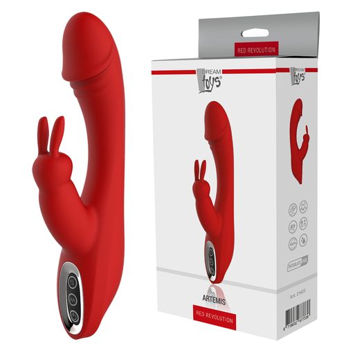 Wielofunkcyjny 2-silnikowy wibrator typu "rabbit" pochodzący z wyjątkowej kolekcji Red Revolution. Urządzenie przeznaczone jest do stymulacji pochwy, punktu G, łechtaczki oraz innych wrażliwych obszarów ciała. Wyprofilowany i wygięty koniec z wyraźnie zaznaczoną główką, z łatwością dotrze do kobiecego punktu G. Dodatkowo, wibrator ten posiada specjalnie zaprojektowany "króliczek", którego zadaniem jest intensywna stymulacja łechtaczki.