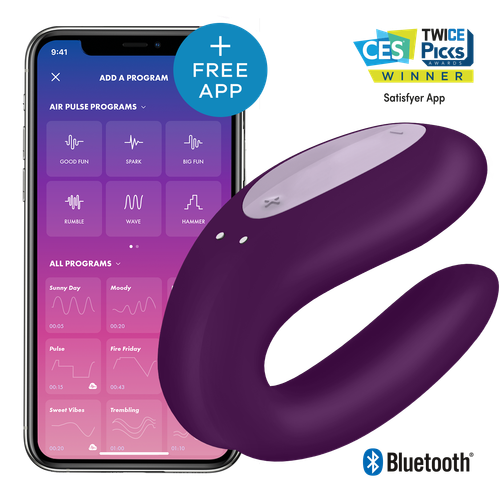 Jedno urządzenie podwójna rozkosz! Double Joy silnie stymuluje oboje partnerów podczas seksu. Forma w kształcie litery U jest dopasowana zarówno wewnątrz, jak i na zewnątrz, pieszcząc łechtaczkę, punkt G i penisa. Dodatkowo wibrator Satisfyer sprawia wrażenie ciaśniejszej pochwy, gdy jest zaaplikowany w trakcie penetracji. Double Joy to zabawka, która umożliwia sterowanie za pomocą bezpłatnej aplikacji, dzięki czemu masz dostęp do nieskończonej ilości kombinacji.