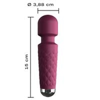 Nowoczesny masażer, wibrator typu "wand" wykonany z silikonu medycznego. Urządzenie przeznaczone jest do stymulacji pochwy, łechtaczki, penisa oraz innych wrażliwych obszarów ciała. Jest niesamowicie przyjemny w dotyku. Wyróżnia się eleganckim i ekskluzywnym designem. Piękny głęboki kolor i wyjątkowa faktura na powierzchni masażera zapewnia luksusowy, wysublimowany wygląd. Wibrator posiada aż 20 trybów wibracji i 8 prędkości, a jego ergonomiczny kształt sprawia, że idealnie leży w dłoni i umożliwia wygodną obsługę przycisków kciukiem. Korpus różdżki został zaprojektowany tak, by można go było wygodnie trzymać, a jego powierzchnia ma miękką i przyjemną teksturę. Elastyczna szyja obraca się, aby jak najlepiej dopasować się do anatomii.